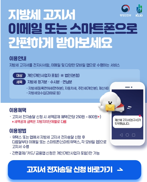 간단한 본인인증 후 전자고지 신청하실 수 있습니다.