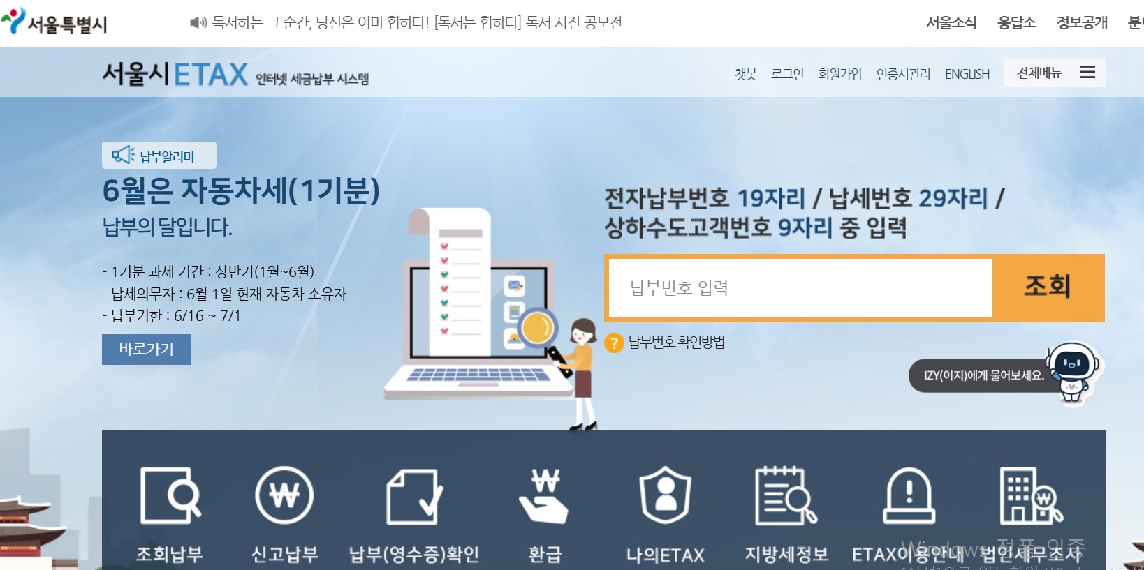 2. 이택스 홈페이지에서 납부번호를 입력하시면 자동차세가 나오고 바로 납부하시면 됩니다.